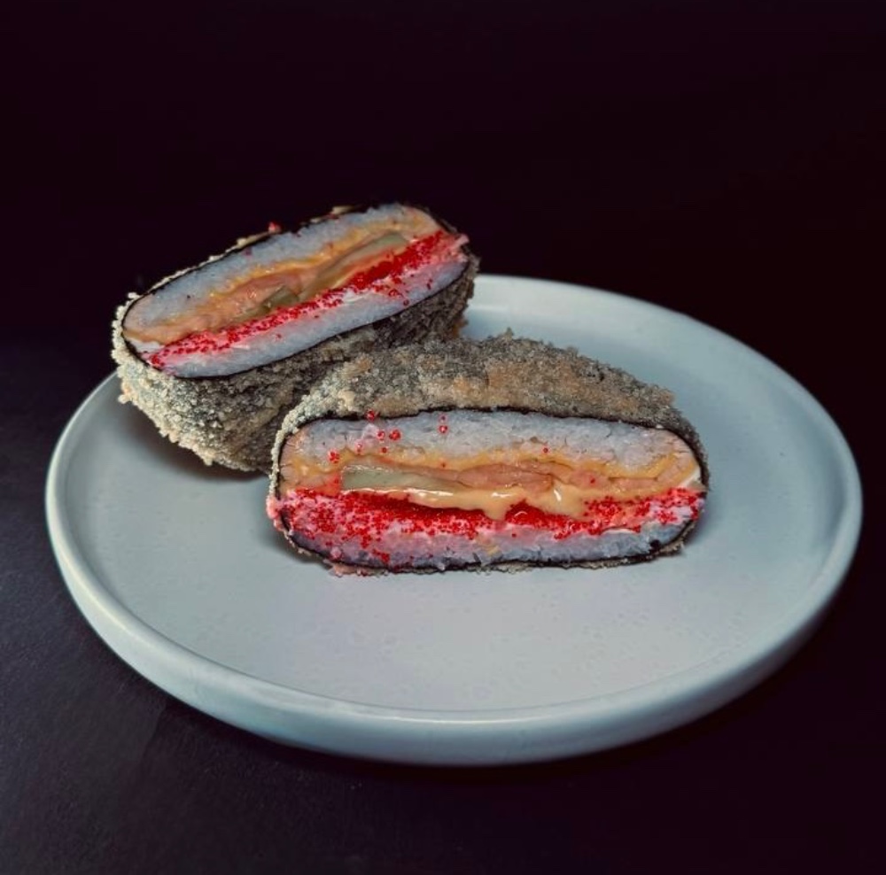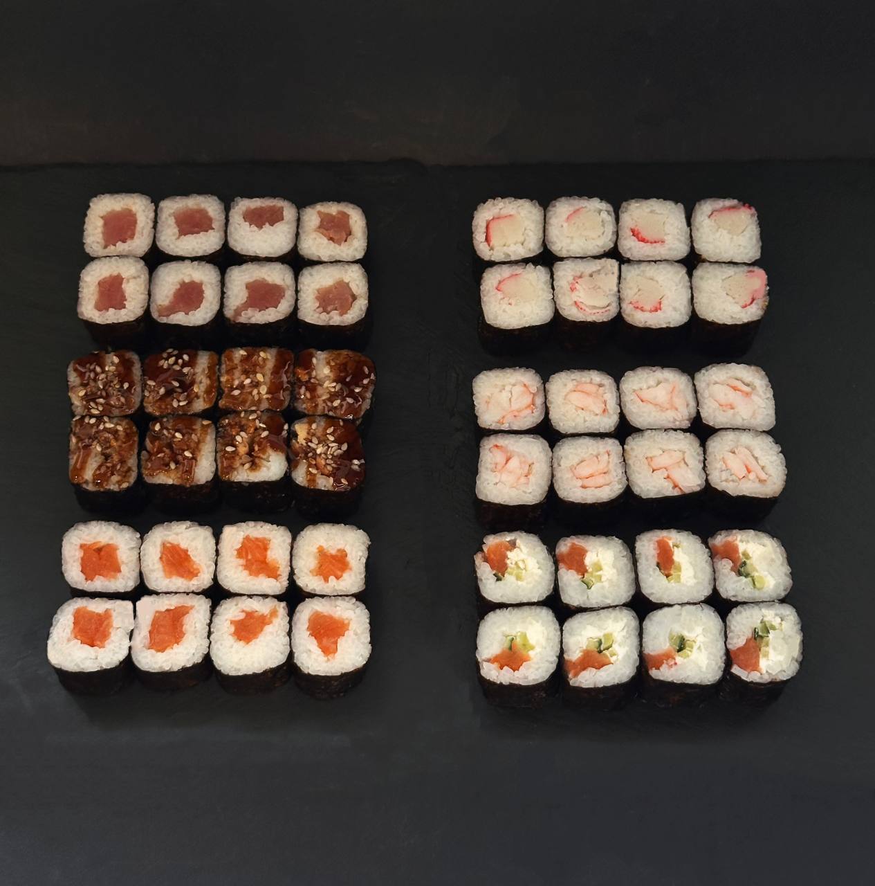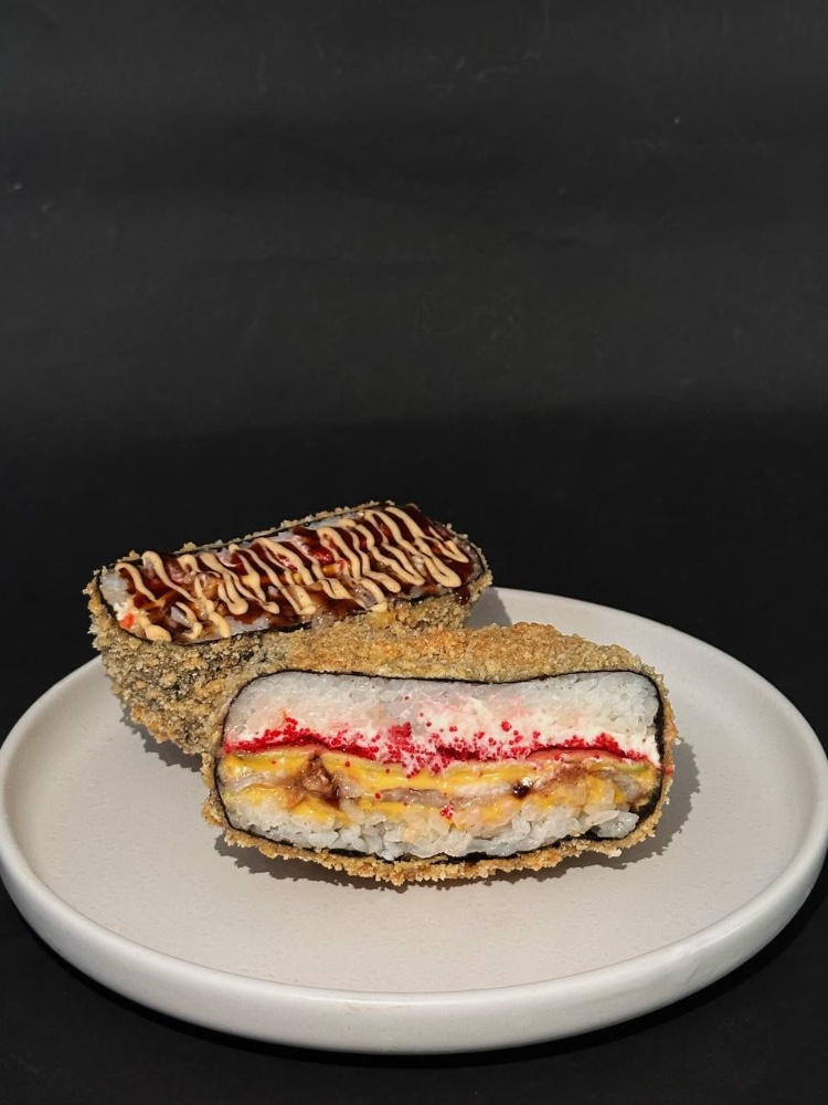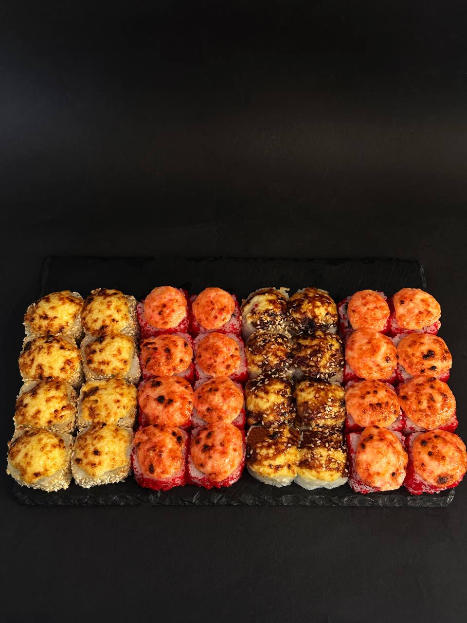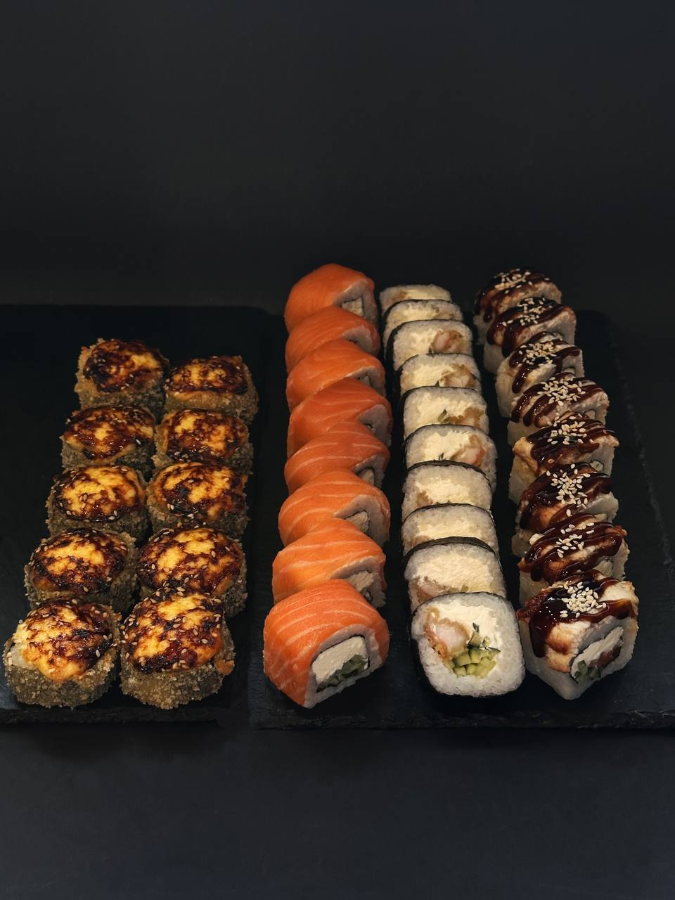 норі, рис, сир філадельфія, огірок, лосось, стружка тунця, соус унагі